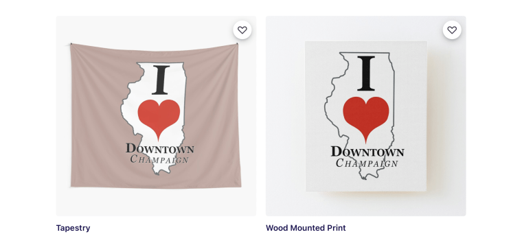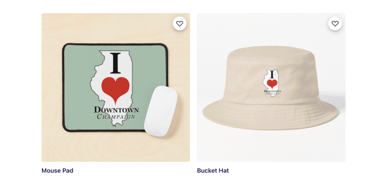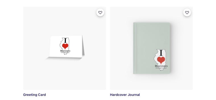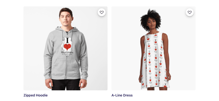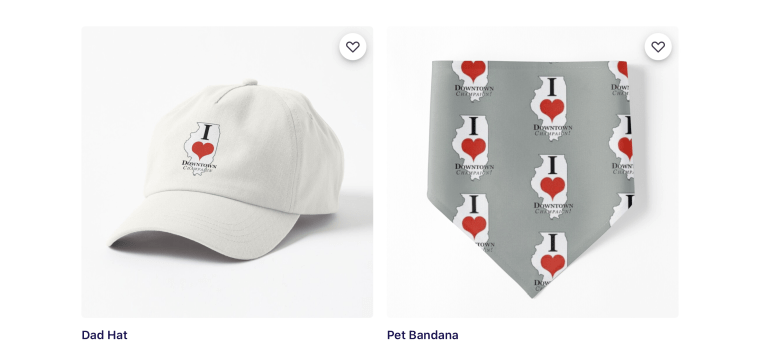 Shop from over 90 different items that show support of your favorite I HEART Downtown design!